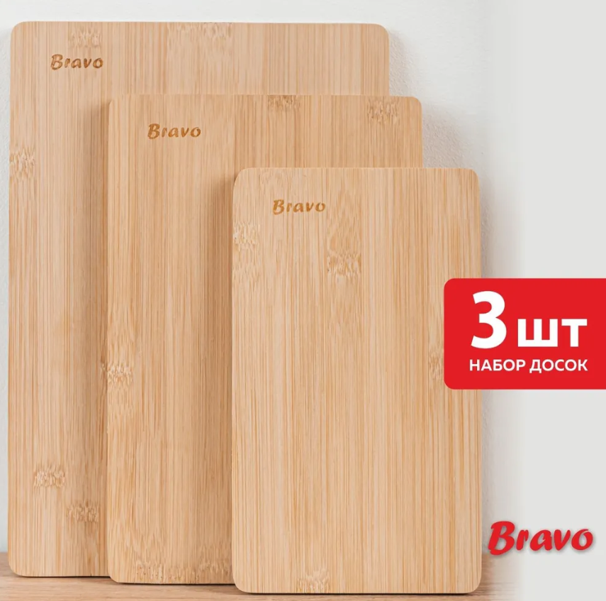В комплект входят три доски размером, что делает их универсальными для любых задач на кухне.