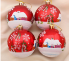 Набор шаров пластик d-7 см, 4 шт "Избушка" красный