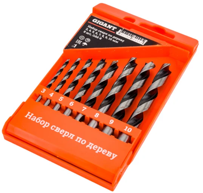 Набор сверл по дереву 3-4-5-6-7-8-9-10 мм, 8 шт, пластиковый кейс Gigant Gdd-8