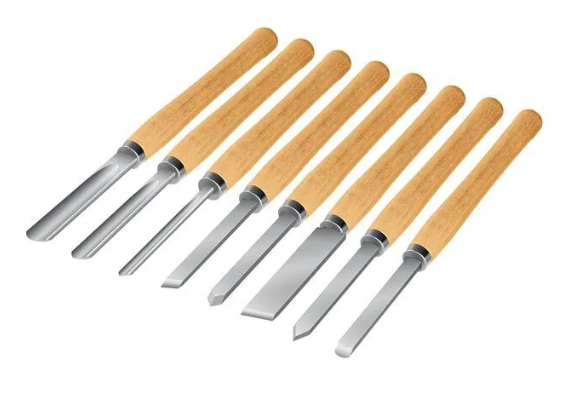 Набор включает 8 резцов с различными типами лезвий, что позволяет обрабатывать заготовки любой сложности. Каждый инструмент предназначен для выполнения определенных операций: от грубой обработки до точной шлифовки и создания сложных элементов.