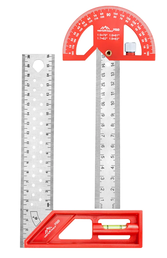 Набор угольников vertextools PROFI для столярных работ, 2 предмета, линейка разметочная + угольник