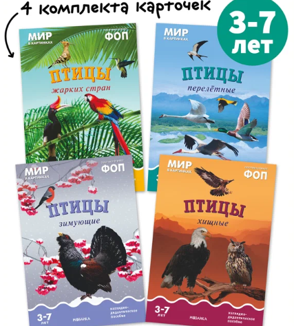 Наглядно-дидактические пособия от рождения до школы для детей 3-7 лет, Мир в картинках, Набор из 4 пособий, Тема "Птицы"
