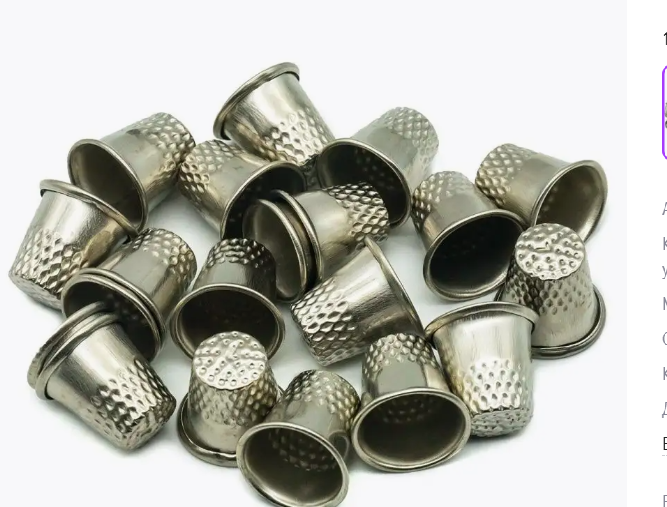 Металлический напёрсток диаметром 18 мм — это практичный инструмент, который защитит ваши пальцы при шитье. Набор из 20 штук идеально подойдёт как для домашнего творчества, так и для профессионального использования. Хромированная поверхность обеспечивает долговечность, а плотно облегающий дизайн предотвращает соскальзывание напёрстка во время работы.