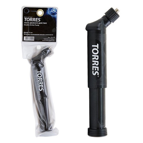 Насос двойного действия "TORRES", современная конструкция с боковой горловиной, длина 15 см, в комплекте игла с диаметром резьбы 7 мм для накачивания мячей, без гибкого шланга.