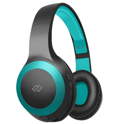 Наушники Digma BT-15, Bluetooth/3.5 мм, накладные, черный/голубой