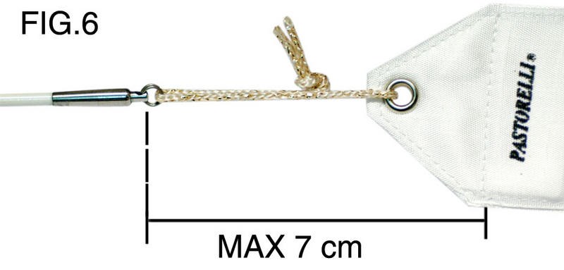 По регламенту FIG расстояние между палочкой и лентой (до вертикальной строчки) не должно превышать максимум 7 см