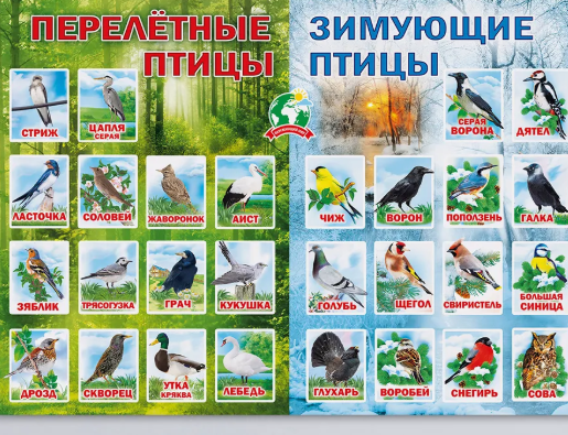 Обучающий плакат Птицы на стену в школу и детский сад