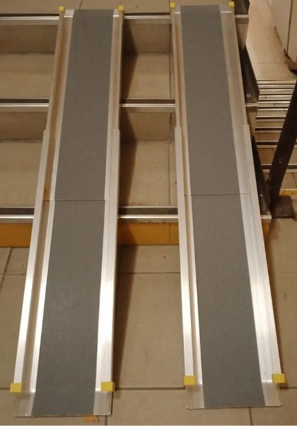 Пандус телескопический 2-секционный Антислип 300 см, серый (рабочая длина 290 см + 2 опор.площадки по 5 см)