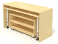 Комплект мебели выполнен из ЛДСП толщиной 16 мм с противоударной кромкой ПВХ толщиной 2 мм. Изделие состоит из стационарной тумбы (р-р 1284*558*626 мм), прямоугольного стола на колесах (р-р 1200*500*400/460/520/580 мм) и выкатной тумбы для игрушек (р-р 882*488*410 мм).