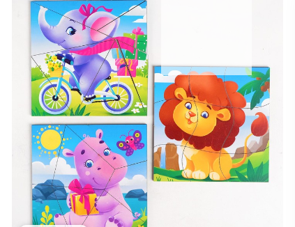 Пазл разрезной «Животные зоопарка», 3 картинки в раме