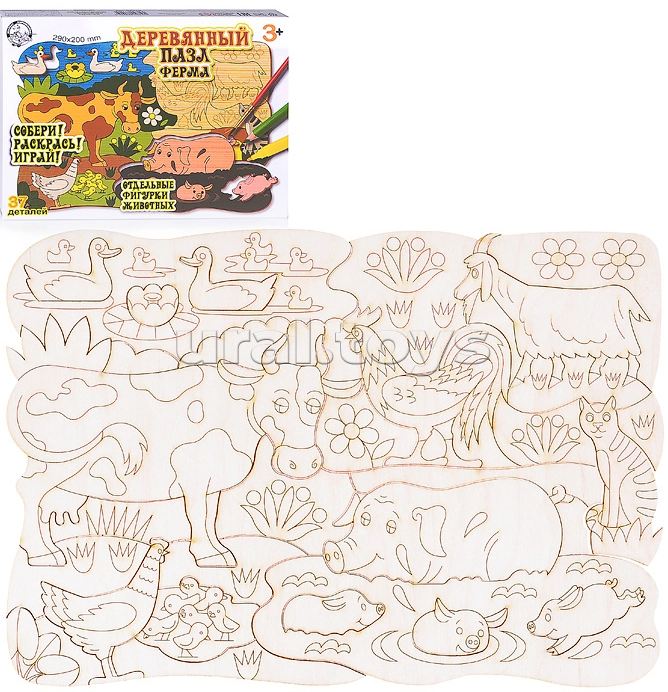 Пазл-вкладыш деревянный "Ферма" (29х20см) 37 эл
