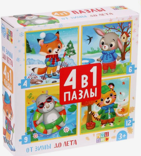 Пазлы 4 в 1 «От зимы до лета», 4, 6, 9, 12 элементов