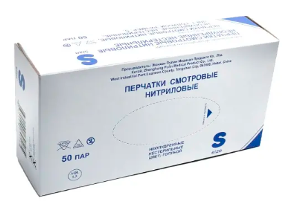 Перчатки смотровые нитриловые нестерильные неопудренные S 50 пар/голубой/жонхон пулин/