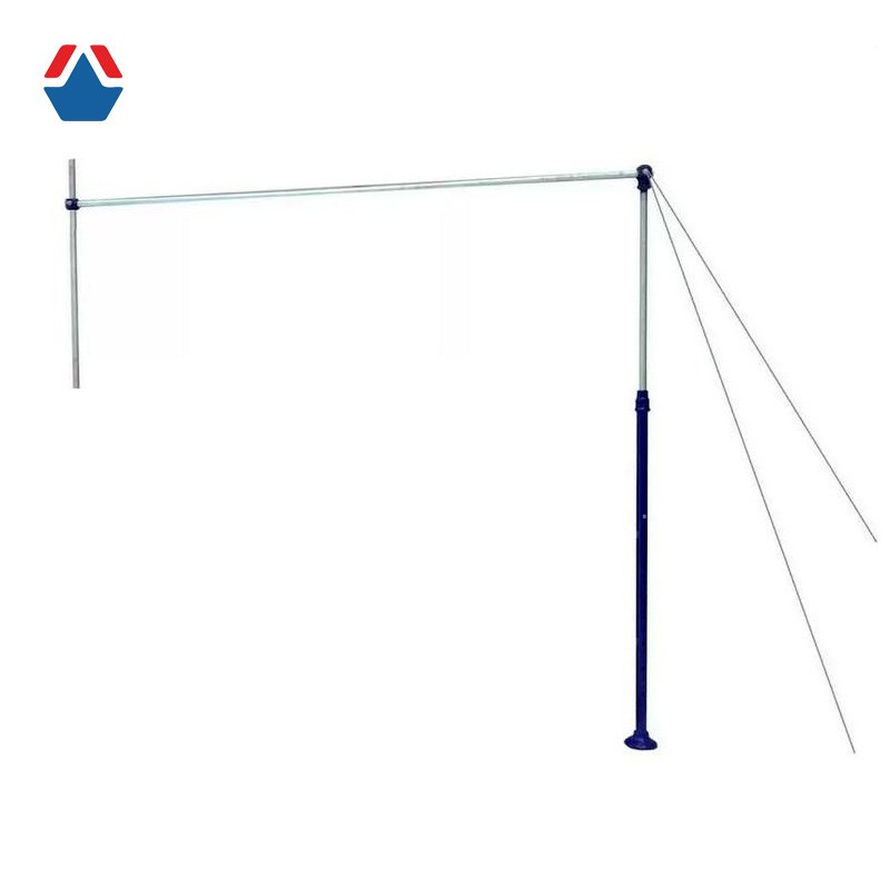 Это металлическая конструкция, состоящая из стержня с двумя растяжками, вертикальной телескопической стойки и узла для крепления к стене. Одна стойка крепится к полу с помощью растяжек, а другая — к стене с помощью анкерных болтов.