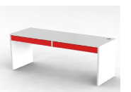 ЛДСП толщиной 16 мм, противоударная кромка ПВХ 1 и 2 мм. Ящики на роликовых направляющих. На столешнице заглушка кабель-канала. Цвет серый, белый и красный