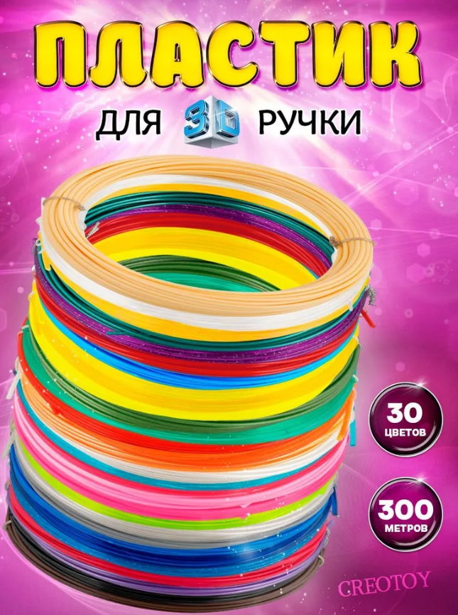 Пластик для 3д ручки ABS, по 10 метров 30 цветов (300 метров)