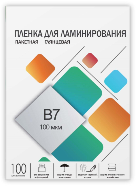 Пленка для ламинирования B7 85х120 мм, 100 мкм, 100 штук, глянцевые, Гелеос