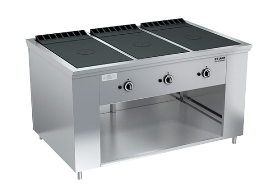 Мощность конфорок 3х10 кВт. Расход природного газа - 3,11 м3/ч, сжиженного - 2,42 кг/ч. Размер чугунного настила 430х780 мм2, толщина 13мм. Без духового шкафа. Материал исполнения корпуса: нержавеющая сталь. Пьезорозжиг, газконтоль, запальная горелка.