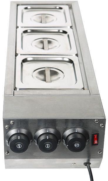 Подогреватель HW-23 используется на предприятиях общественного питания и торговли для темперирования и поддержания в горячем виде шоколада и соусов. Модель оснащена 3 емкостями для работы с различными видами шоколада одновременно, 3 ТЭНами, 3 термостами независимой регулировки температуры и керамическими подогревателями. Корпус выполнен из нержавеющей стали. В комплект поставки входят 3 GN 1/6 глубиной 100 мм с крышками. Температурный режим: 30-110°C.