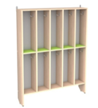 ЛДСП 16 мм, кромка ПВХ 0,4 мм, задняя стенка ХДФ 3,2 мм, в каждой ячейке крючок, ширина ячейки 120 мм, высота 500 мм, от пола до нижней полки 150 мм.