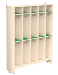 ЛДСП 16 мм, кромка ПВХ 0,4 мм, задняя стенка ХДФ 3,2 мм, в каждой ячейке крючок, ячейка Ш120 мм, Н500 мм, полочка Н120 мм, от пола до нижней полки 150 мм.