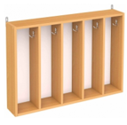 ЛДСП 16 мм, кромка ПВХ 0,4 мм, задняя стенка ХДФ 3,2 мм, в каждой ячейке крючок, ширина ячейки 120 мм