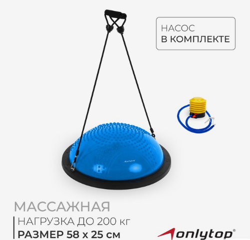 Полусфера BOSU гимнастическая ONLYTOP, массажная, с насосом, 58×25 см, синяя