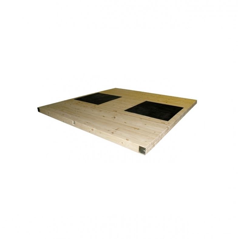 Помост с амортизаторами из литой резины предназначен для проведения тренировок тяжелоатлетов, представляет собой квадратную сборную платформу, состоящую из деревянных секций, одинаковых по габариту, но отличающихся по конструкции. Секции фиксируются относительно друг друга специальными деревянными треугольными шпунтами в паз и стянуты в середине шпилькой с гайками, а по краям металлическими втулками.