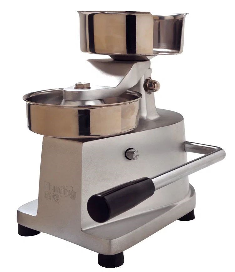 Ручной пресс для гамбургеров, диаметр — 100мм, корпус выполнен из анодированного алюминия, детали, контактирующие с пищевыми продуктами, — из нержавеющей стали