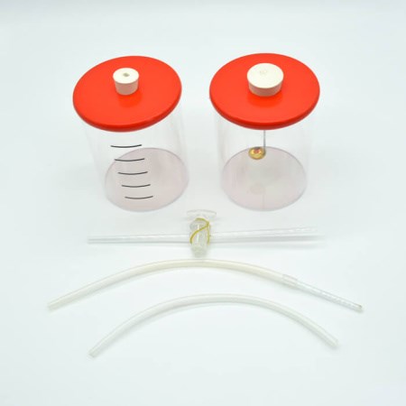 Прибор состоит из двух прозрачных пластиковых стаканов, снабженных герметичными крышками. Стаканы соединяются трубкой ПВХ. В крышку одного стакана вставляется пробка с ложкой для сжигания вещества, в крышку другого - пробка с краном одноходовым, от которого отходит газоотводная трубка со стеклянным мундштуком. На корпус первого стакана нанесены метки, делящие его объем на 6 частей (метки предназначены для определения процента содержания кислорода в воздухе).