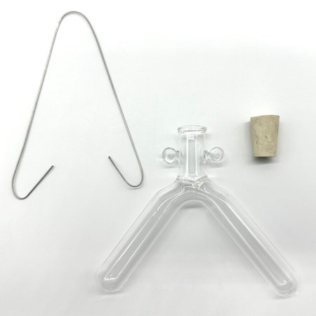 В комплекте - пробирка двухколенная, пробка, проволочный держатель.
