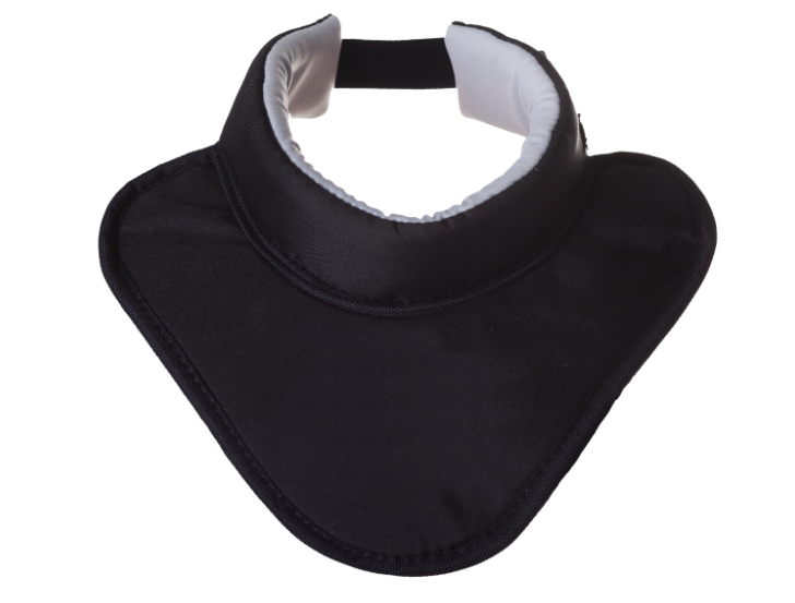 Имеет двухсоставную конструкцию и состоит из мягкого элемента, охватывающего шею, и элемента закрывающего и защищающего область ключиц. Обшит износостойкой влагоотталкивающей полиэфирной тканью. Подгоняется по размеру с помощью липучки.
