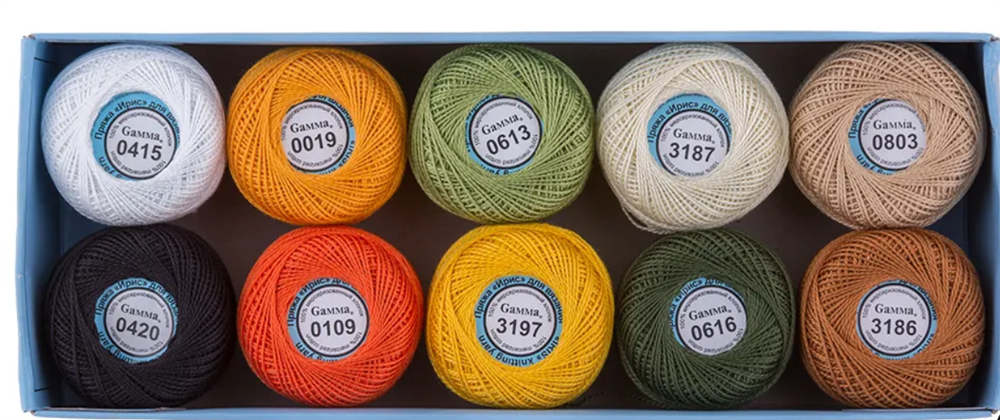Каждый моточек весом 10 г имеет длину 82 м и намотан на удобную картонную бобинку, что предотвращает запутывание и облегчает процесс вязания. Цвета пряжи соответствуют палитре мулине "Gamma", что позволяет легко сочетать её с другими материалами для рукоделия.