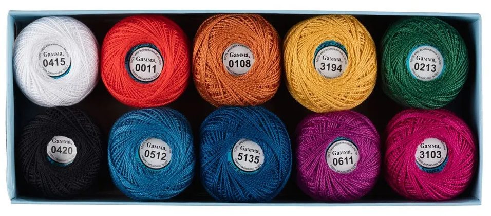 Каждый моточек весит 10 г, имеет длину 82 м и аккуратно намотан на картонную бобинку, что предотвращает спутывание и делает процесс вязания комфортным. Цветовая палитра соответствует оттенкам мулине "Gamma", что позволяет легко комбинировать эту пряжу с другими материалами.