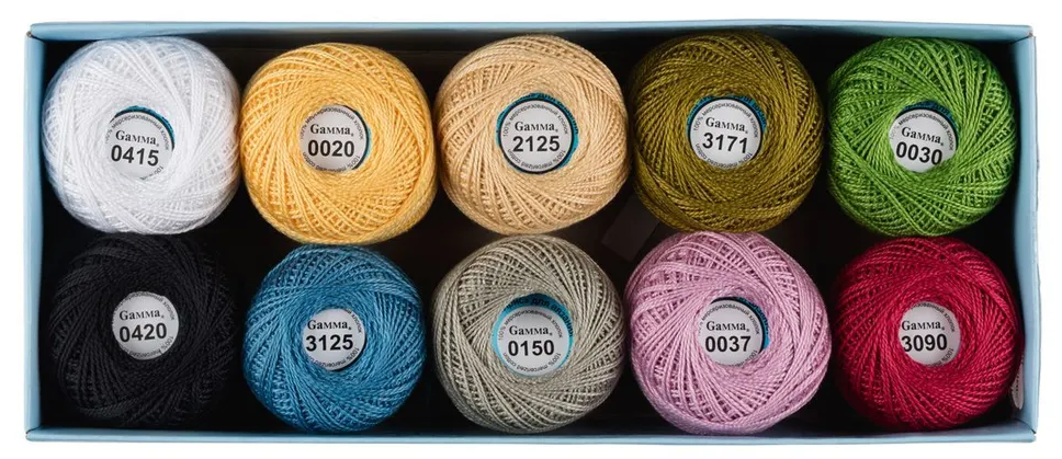 Каждый моточек весом 10 г и длиной 82 м аккуратно намотан на картонную бобинку, предотвращающую путаницу во время работы. Цветовая палитра соответствует мулине "Gamma", что позволяет комбинировать пряжу с другими материалами для создания гармоничных изделий.