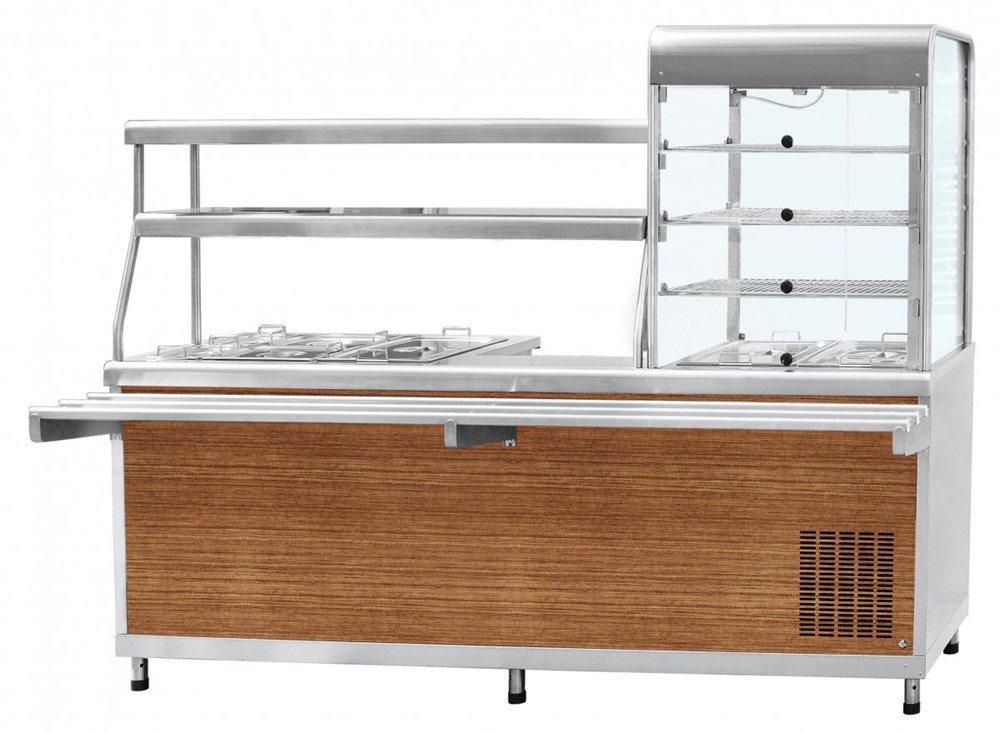Конструкция: комбинация холодильной витрины и двух мармитов