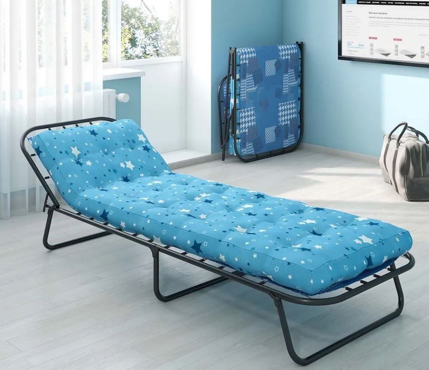 Раскладушка, с ватным матрасом, спальное место 70*190, с регулируемым подголовником