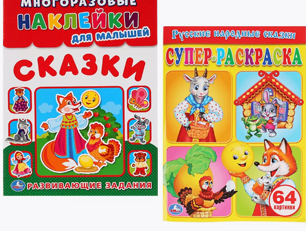Раскраска Русские народные сказки и и наклейки набор 2в1