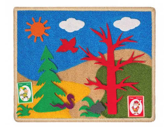 Ковролиновая основа (не менее 450 мм х 550 мм), разделенная на области: «небо», «дорога», «полянка», «лужайка» (1 шт.).