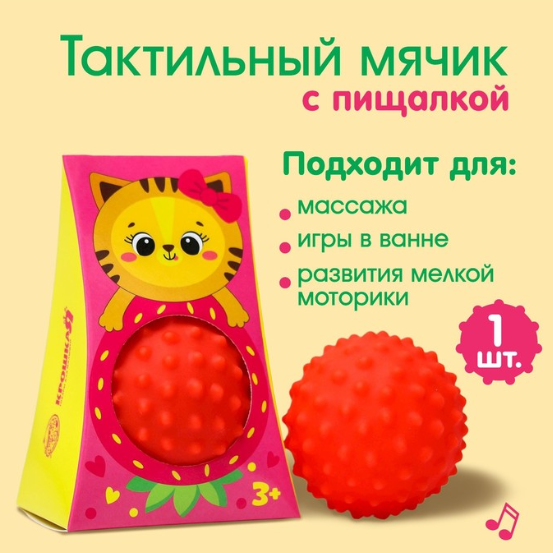 Развивающий, массажный, рельефный мячик «Кошечка»