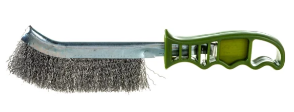 Щётка с пластиковой рукояткой, стальная щетина Дело Техники 270211 подойдет для удаления загрязнений с металлических поверхностей. Инструмент справится с: ржавчиной; краской; любыми твердыми отложениями.
