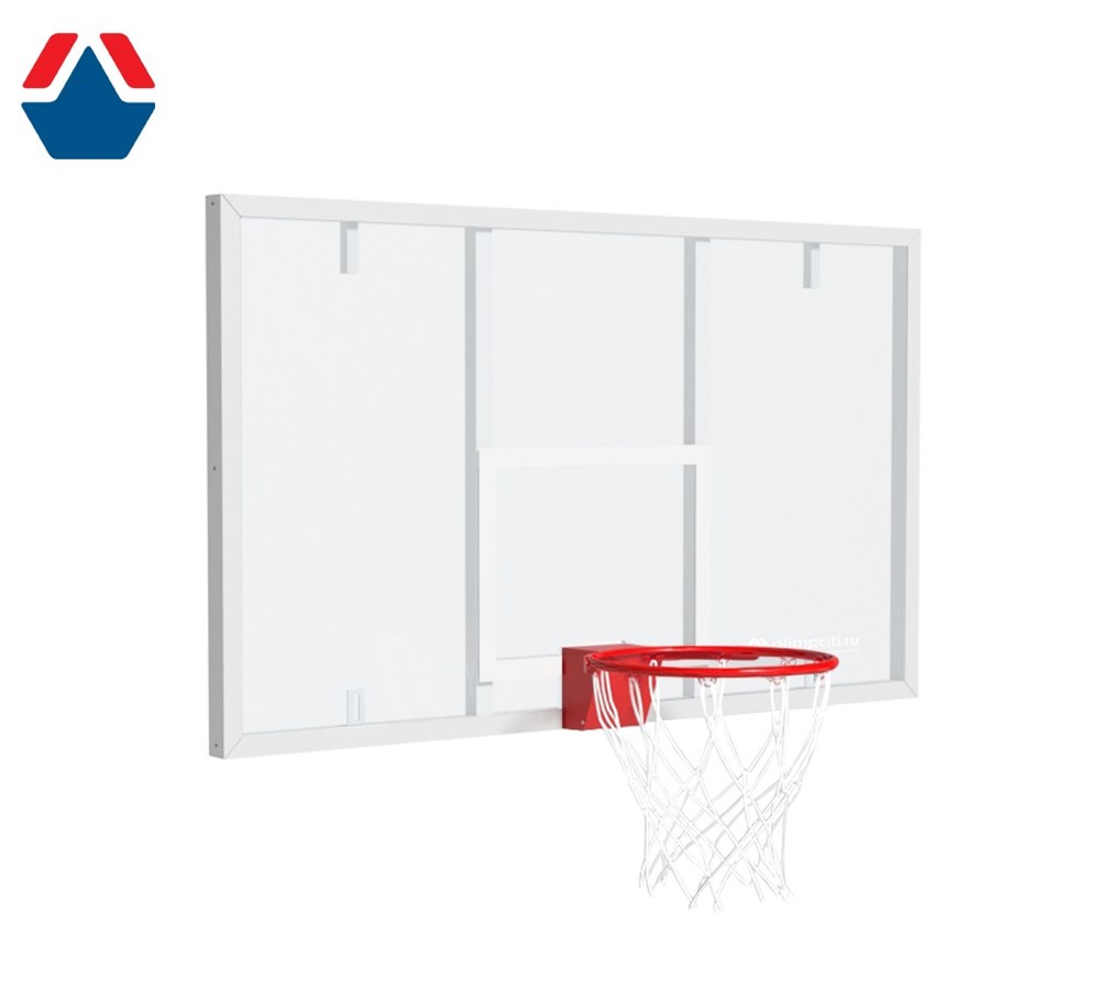 Щит баскетбольный игровой оргстекло 15мм 1800х1050 цвет разметки БЕЛЫЙ (для стойки ЭКСКЛЮЗИВ)