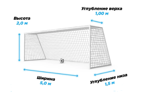 Футбольная сетка для средних ворот 5,0х2,0х1,0х1,5 м