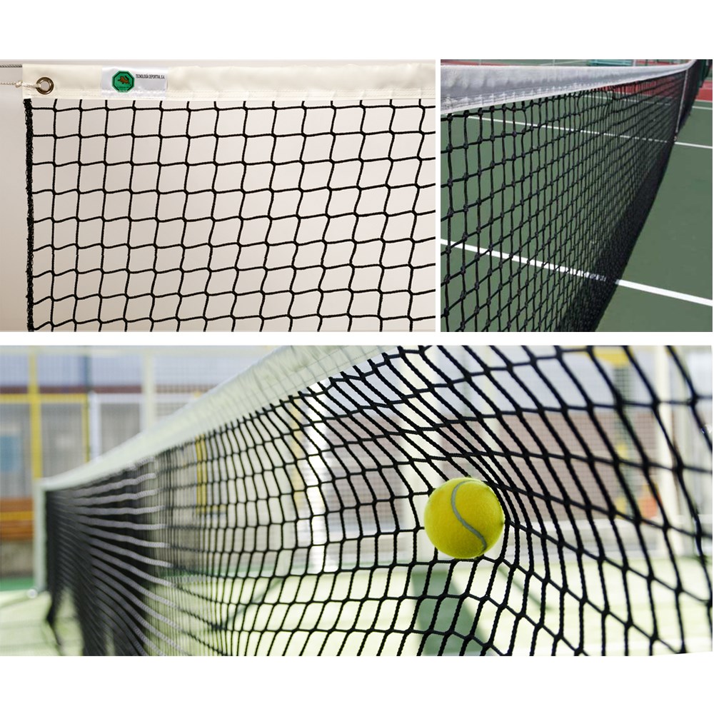 Произведена по безузловой технологии, ячейка - четырехугольная, стандартная 45х45 мм. Теннисные сетки, произведенные по безузловой технологии позволяют улучшить видимость площадки (т.к. ячейка небольшая, а узлы в случае узловой технологии, занимают достаточную площадь ячейки). Нить толщиной 3,0 мм из полипропилена повышенной прочности, стойкого к агрессивным атмосферным воздействиям и с защитой от ультрафиолета. Стандартные размеры: длина 12.8 м, ширина 1.07 м. Верх сетки окантован белой лентой шириной 5 см из прочного, износостойкого полипропилена, также стойкого к ультрафиолету и агрессивным воздействиям. Без нижней и боковых лент. В комплекте с сеткой поставляется стальной трос длиной 13.20 м и диаметром 4 мм в ПВХ оболочке. Цвет сетки черный.