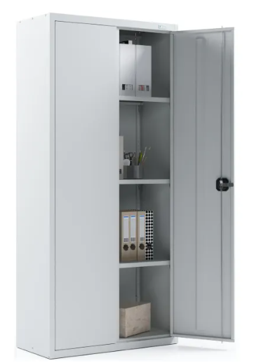 Комплектуется тремя регулируемыми полками, одним ригельным замком с ручкой.