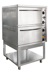 Время разогрева жарочного шкафа до 240°C - 30мин. Пределы регулирования температуры жарочного шкафа, ºС (+45 - +270)±10. Внутренние размеры каждой камеры 538x535x290 мм. Конструкция шкафа — бескаркасная. корпус изготовлен из нержавеющей стали. Каждая камера состоит из стального короба, съемных направляющих для противней, подового листа, верхнего и нижнего блоков ТЭНов.