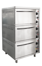 Время разогрева жарочного шкафа до 240°C - 30мин. Пределы регулирования температуры жарочного шкафа, ºС (+45 - +270)±10. Внутренние размеры каждой камеры 538x535x290 мм. Конструкция шкафа — бескаркасная. Каждая камера состоит из стального короба, съемных направляющих для противней, подового листа, верхнего и нижнего блоков ТЭНов.