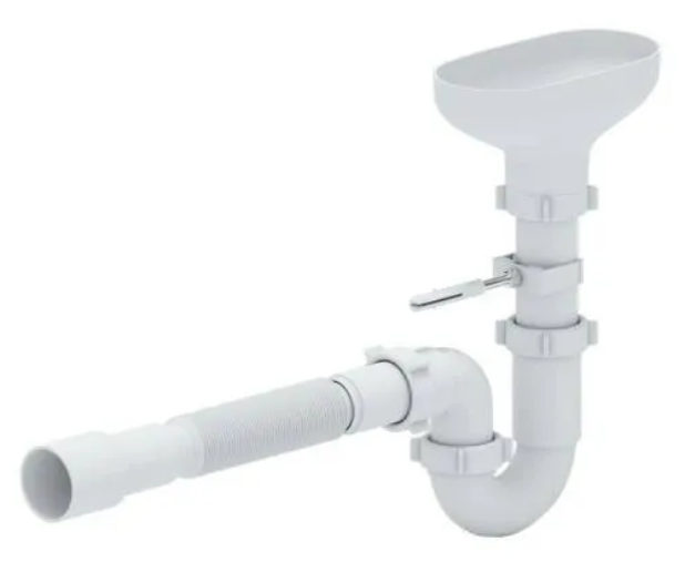 Сифон трубный с разрывом струи 1 1/2''x40 с гофрой 40х40/50 выпуск с воронкой