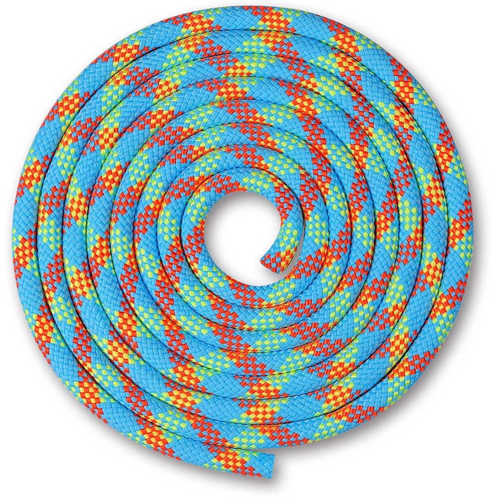 Скакалка гимнастическая INDIGO SM-360-BCL, утяжеленная, длина 3м, шнур, голубо-кораллово-лимонный