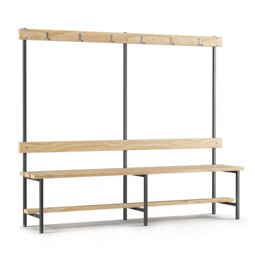Скамейка с вешалкой для раздевалки (L=2000) дерево